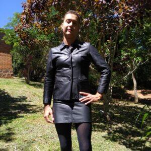Joanne displayed in leather