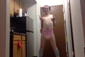 just the steps from naked to total diapered gay, i feel so cute in this new outfit hehe i had to share!