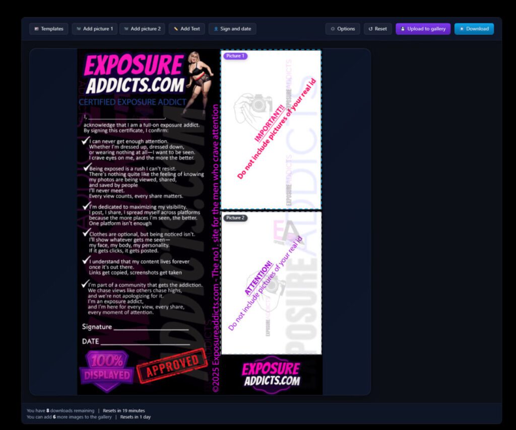 Because gallery uploads are publicly viewable, all content must follow our compliance rules. Uploading images or text containing slurs, degrading language, or explicit sexual content will result in an immediate 1-month ban—no warnings.