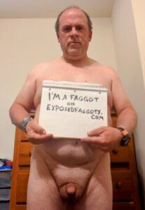Tom holding Exposedfaggots.com sign
